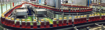 生產(chǎn)線運(yùn)行效率的高低,與輸送線的配置有很大的關(guān)系。在輸送線的配置上須考慮到后段設(shè)備短暫停機(jī)(例如:更換標(biāo)簽等)時(shí),對(duì)前段設(shè)備的運(yùn)行不能產(chǎn)生影響,同時(shí)應(yīng)該能將前后段的設(shè)備良好的銜接在一起,才能使整條生產(chǎn)線達(dá)到較高的運(yùn)行效率。我司的生產(chǎn)線布置充分考慮了客戶投資與生產(chǎn)線使用效率的相互關(guān)系,在引進(jìn)國(guó)外技術(shù)的基礎(chǔ)上,可以很好的達(dá)到上述要求。該系統(tǒng)采用國(guó)外先進(jìn)技術(shù),機(jī)械結(jié)構(gòu)為全新設(shè)計(jì),多數(shù)構(gòu)件采用沖壓或折彎成形,具有剛性好 、重量輕 、互換性好的優(yōu)點(diǎn)。傳動(dòng)方式,運(yùn)轉(zhuǎn)可靠,維修方便,適用于輸送直徑φ40~φ110 mm瓶子。無(wú)壓力輸送系統(tǒng),依靠實(shí)時(shí)速度信號(hào)采集和反饋及自動(dòng)差速控制系統(tǒng),能夠?qū)崿F(xiàn)輸送帶上的瓶在運(yùn)動(dòng)狀態(tài)中由多列平穩(wěn)變更為單列,而不出現(xiàn)相互擠壓現(xiàn)象。 電氣控制系統(tǒng)采用PLC控制整個(gè)實(shí)瓶輸送緩沖系統(tǒng)的運(yùn)行,自動(dòng)實(shí)現(xiàn)運(yùn)行速度加減速、自動(dòng)緩沖的功能。