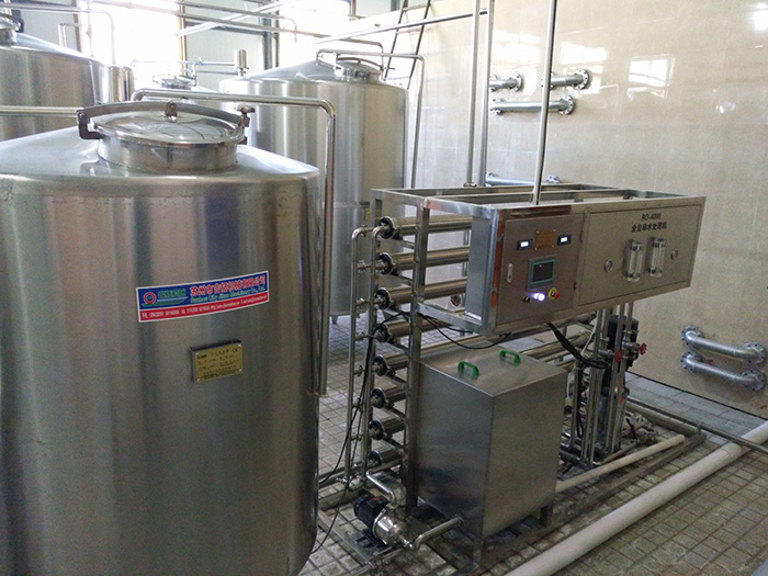 反滲透是交叉流動膜過濾的一種方式(有超濾、納濾以及反滲透)以壓力差為推動力的一種高新膜分離技術,具有一次分離度高、無相變、簡單的特點。反滲透系統還設有5μm保安過濾器、高壓泵、高低壓保護及控制。可移去大部分有機化合物,去除率達到99%,病毒、細菌和熱原質的去除率大于99%。
